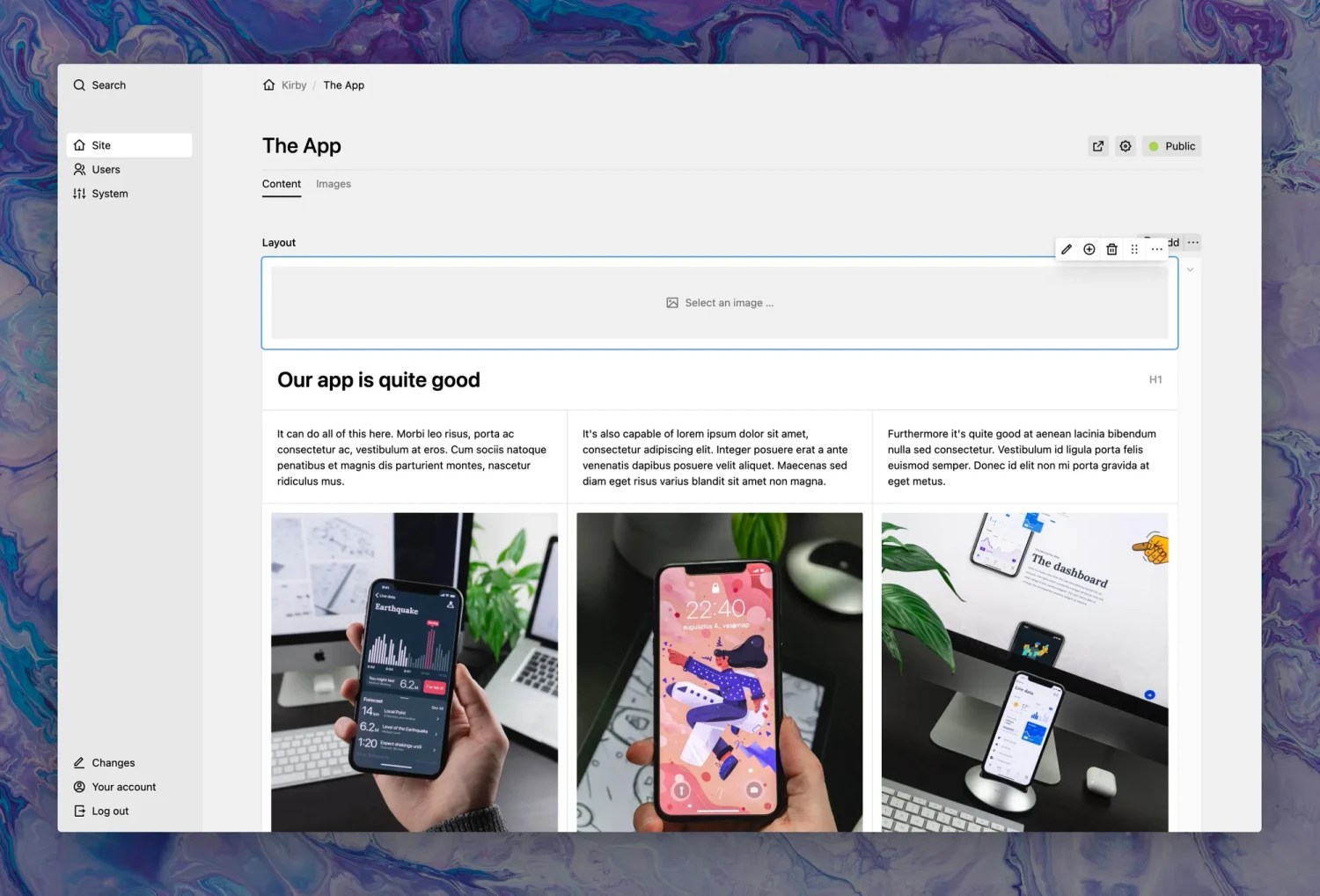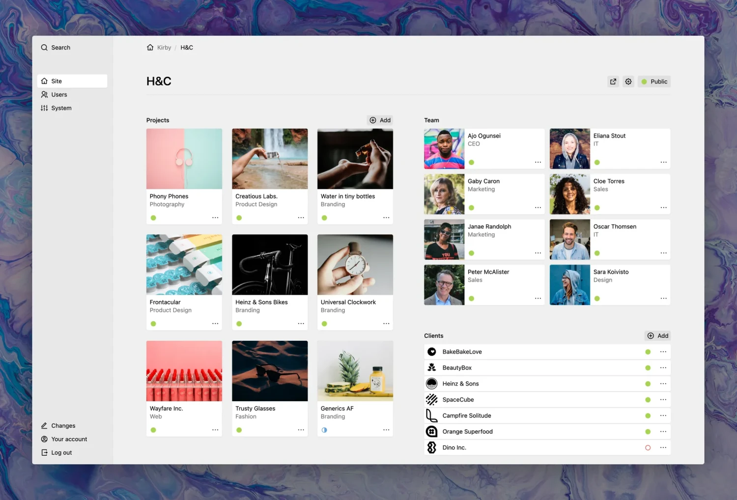 Another great aspect of Kirby is that it can be tailored to suit the needs of the site owner. We can easily create unique versions of the Panel (the back-end where you manage the content) and adapt it to fit the specific requirements of the project.It'll feel like you've got your own custom-made CMS that's been designed with you in mind. Pretty cool, right?